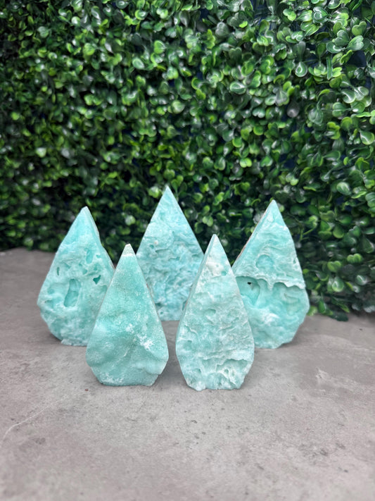 Blue Aragonite Crystal Teardrop Carvings