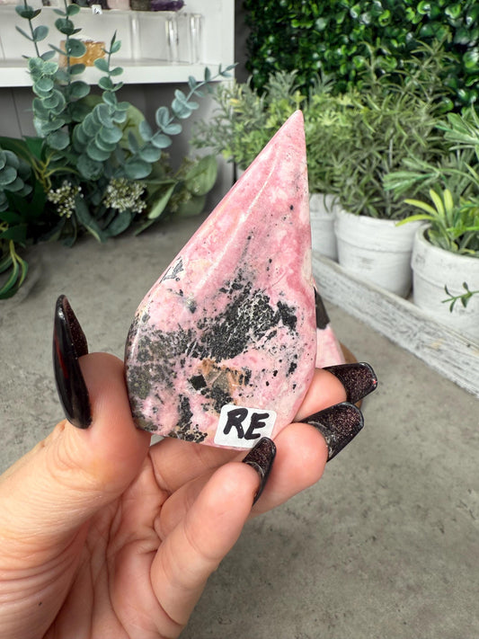 Peruvian Rhodonite Crystal Teardrop Crystal Carvings
