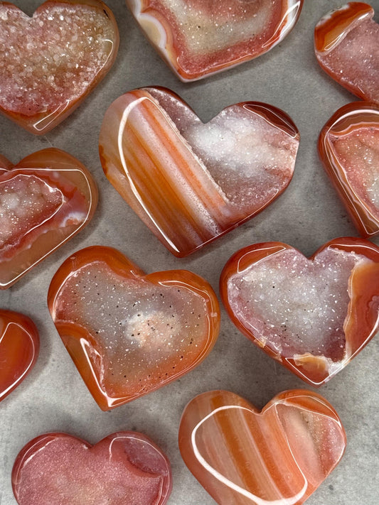 Druzy Carnelian Hearts Crystal Carvings
