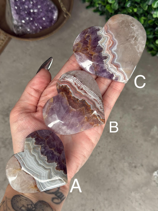Amethyst Agate Heart Crystal Carvings