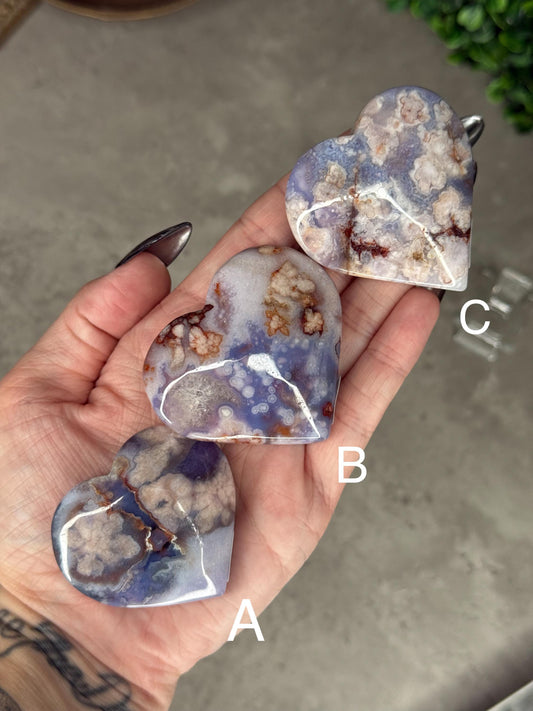 Blue Flower Agate Heart Crystal Carvings