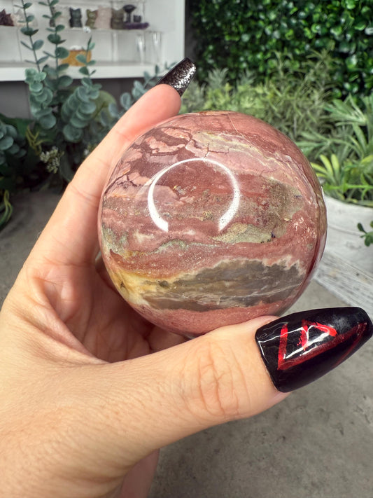 Pink Ocean Jasper Crystal Sphere High Quality 392g